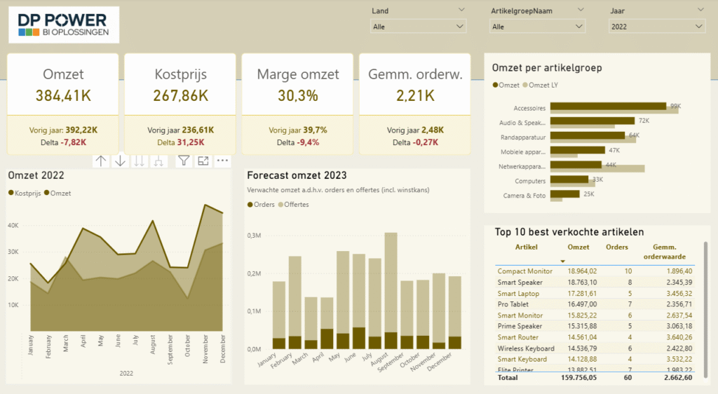 Mijn salesdashboard biedt direct inzicht in omzet, marges en resultaten per maand én per artikelgroep.